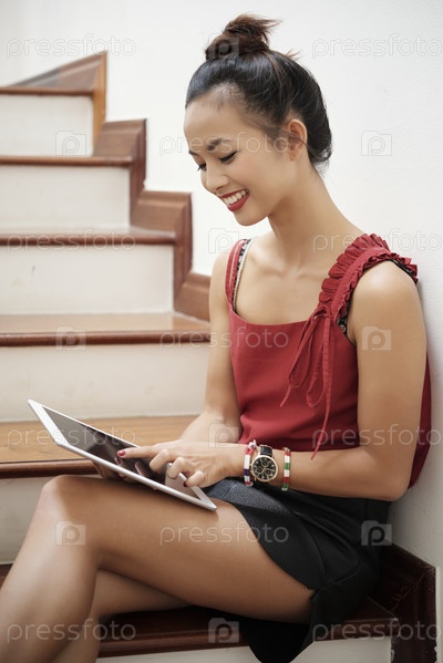 Женщина, использующая цифровой планшет