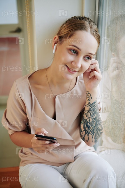 Молодая женщина слушает музыку