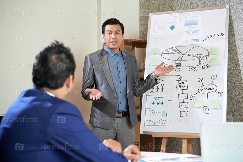 Бизнес-тренер делает презентацию для коллег