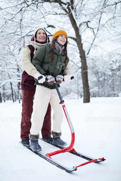 Пара, едущая на санях