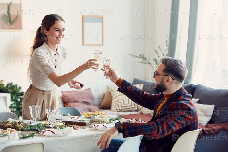 Элегантная пара тостирует на рождественской вечеринке