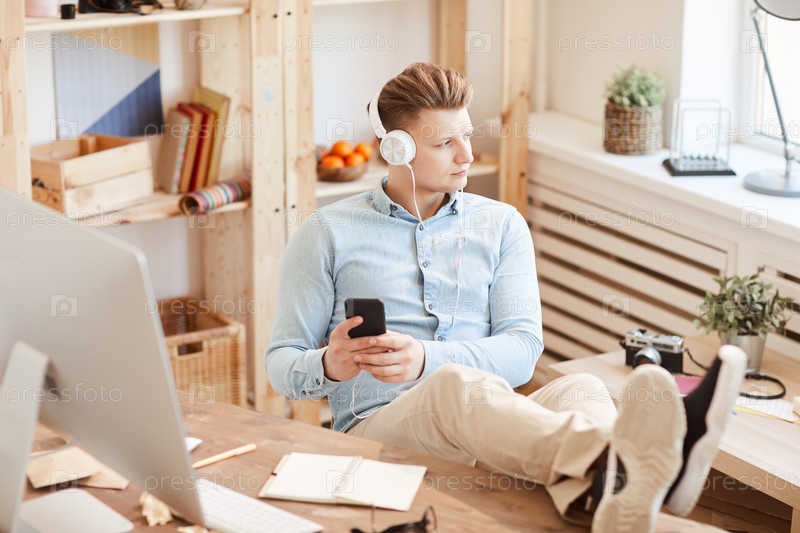 Вдумчивый парень отвечает на сообщение со смартфона