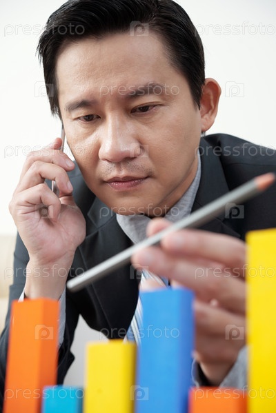 Пенсивный предприниматель рассматривая график