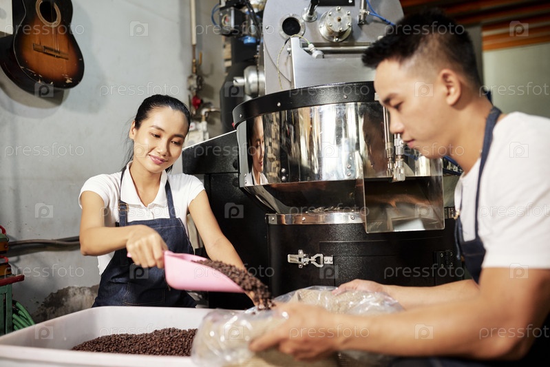 Люди, работающие в команде на кофейной фабрике