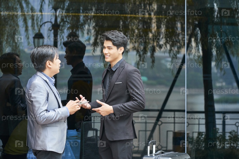 Бизнесмены, разговаривающие на открытом воздухе