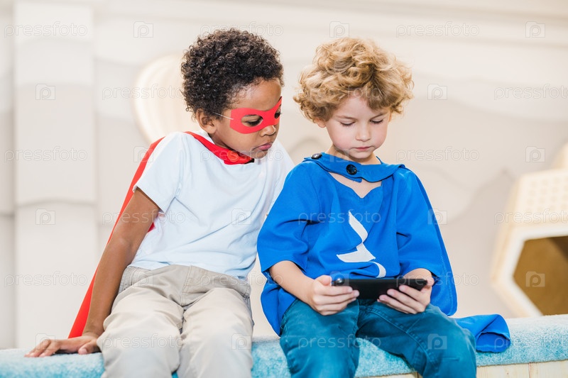Очаровательный блондин и его африканский друг смотрят странные вещи на смартфоне