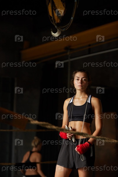 Жесткая молодая женщина в ринге
