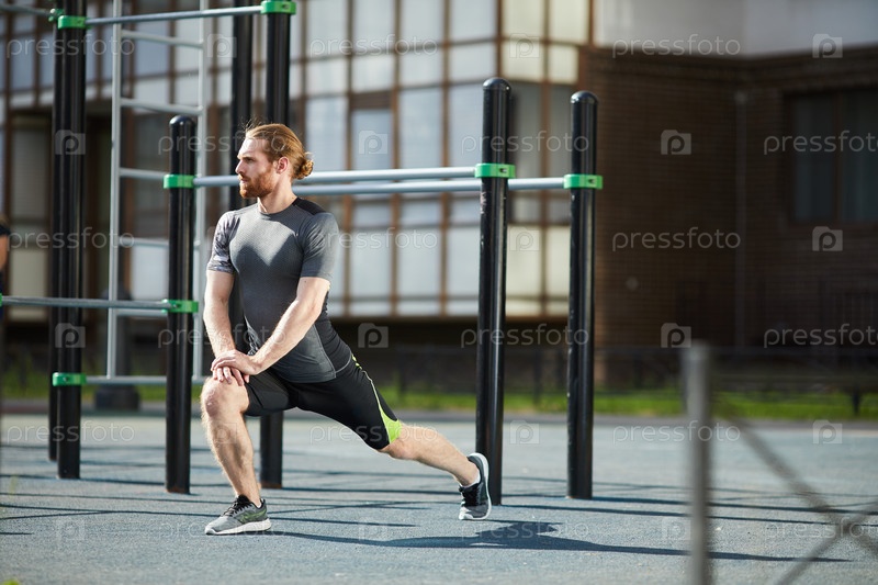Мужчина-фитнесмен практикует упражнения по растяжению