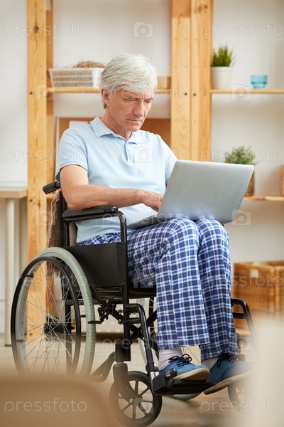 Инвалид использует ноутбук