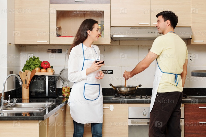 Пара, готовящая вместе ужин