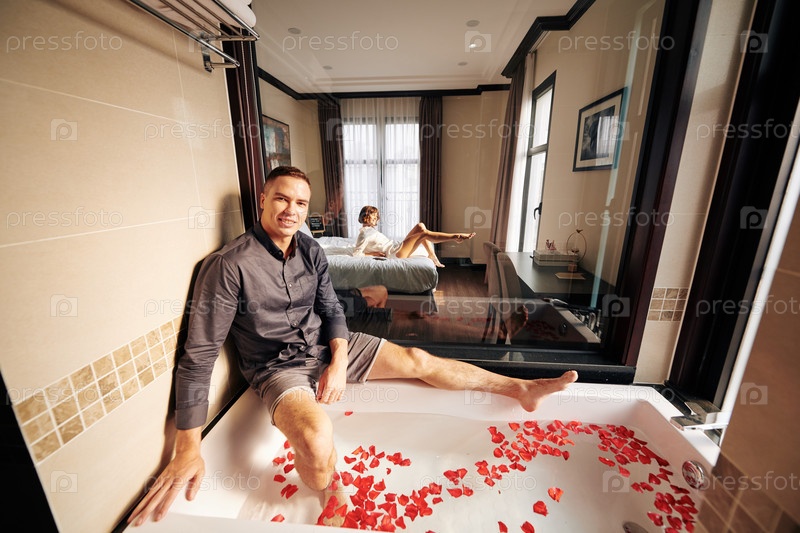 Мужчина готовит ванну для себя и своей девушки
