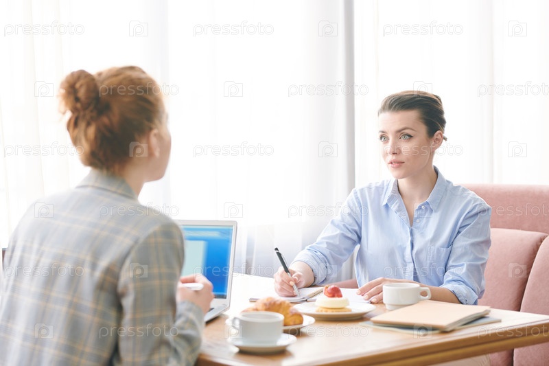 Современные дамы обсуждают проект за обедом