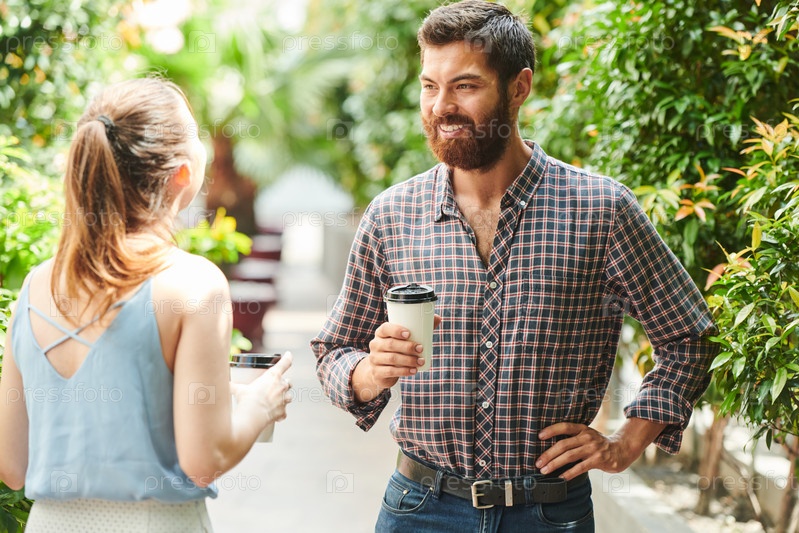 Улыбающийся мужчина разговаривает с другом на открытом воздухе