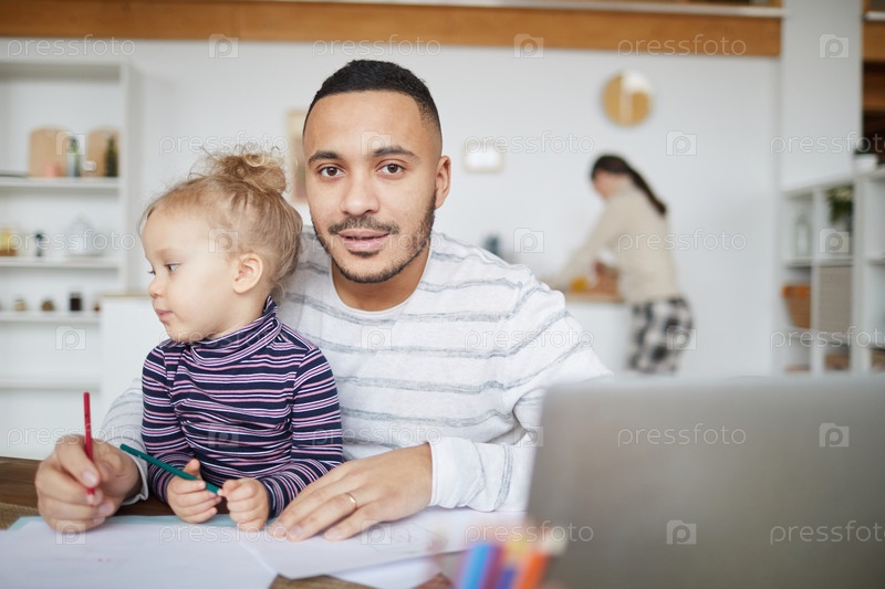 Рабочий отец позирует с милой девочкой