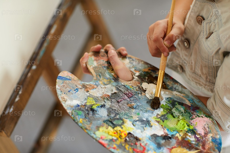 Маленькая девочка, держащая палитру