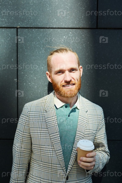 Краснобразный бизнесмен с выносным напитком