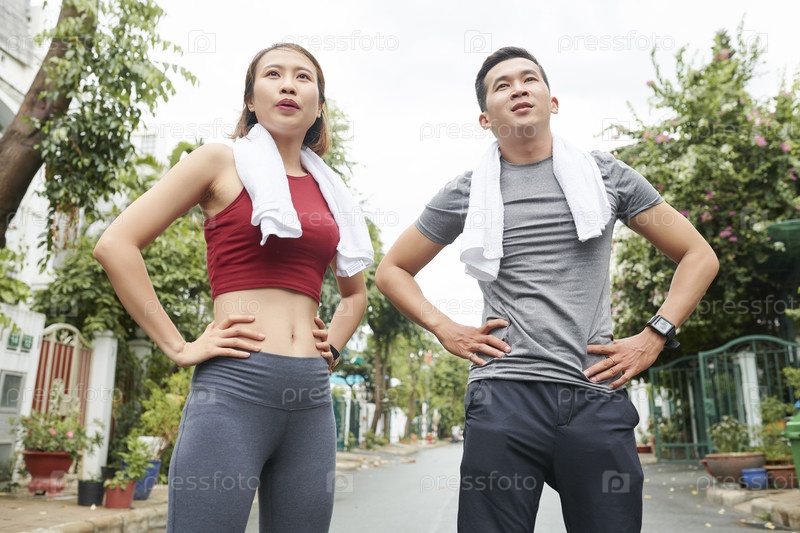 Фитная молодая усталая пара бегунов