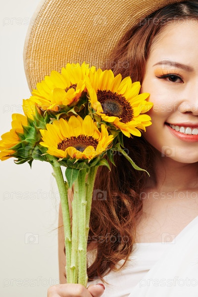 Азиатская женщина с подсолнечками