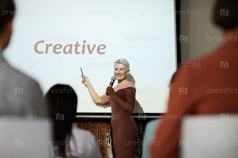 Женщина, выступающая на бизнес-конференции