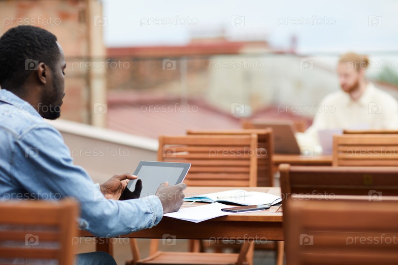 Мужчина, использующий планшетный компьютер на работе