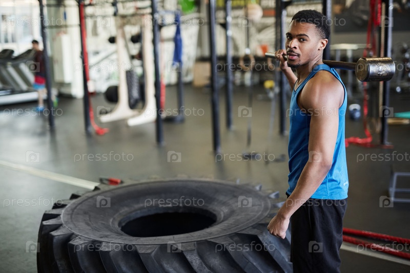 Красивый африканский спортсмен позирует в тренажерном зале
