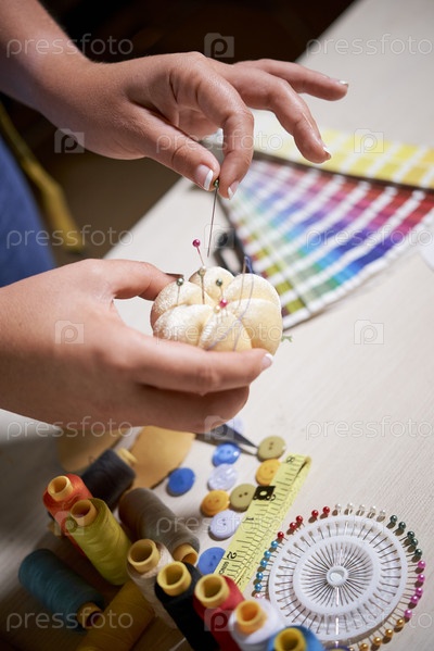 Швея с помощью булавок