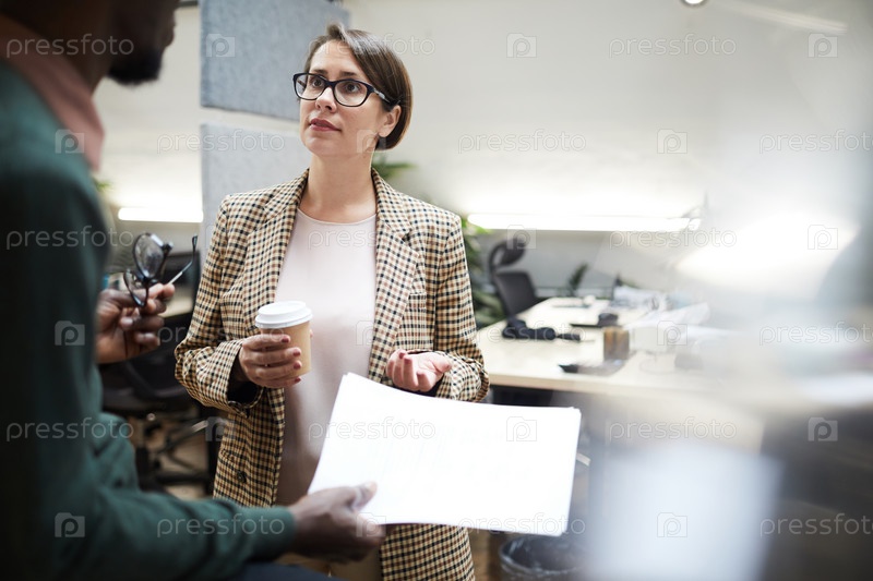 Бизнес-менеджер разговаривает с сотрудником