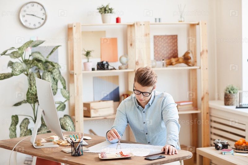 Опытный инженер, использующий пару компасов