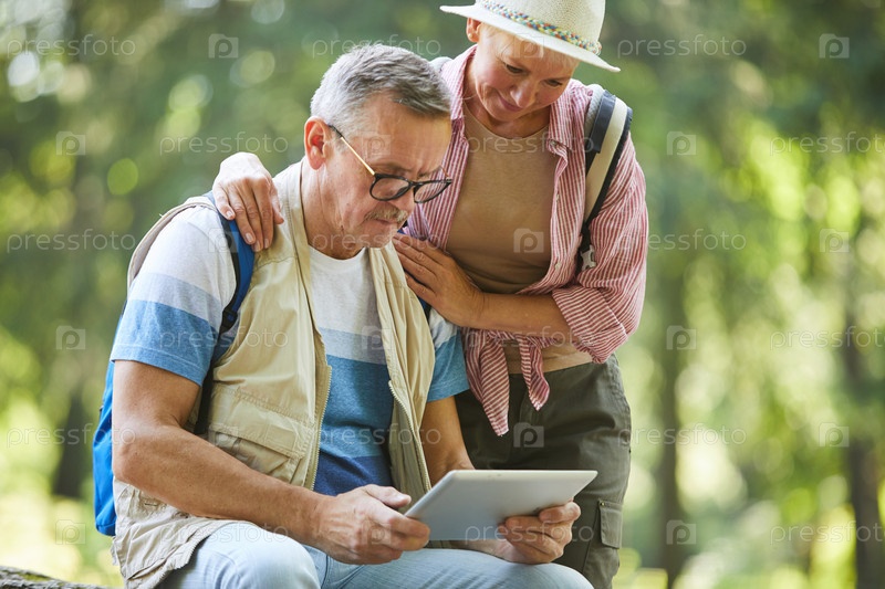 Пара путешественников с планшетным компьютером