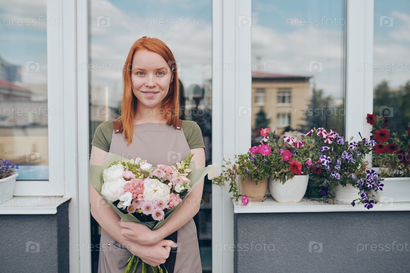 Девушка обнимает красивый букет
