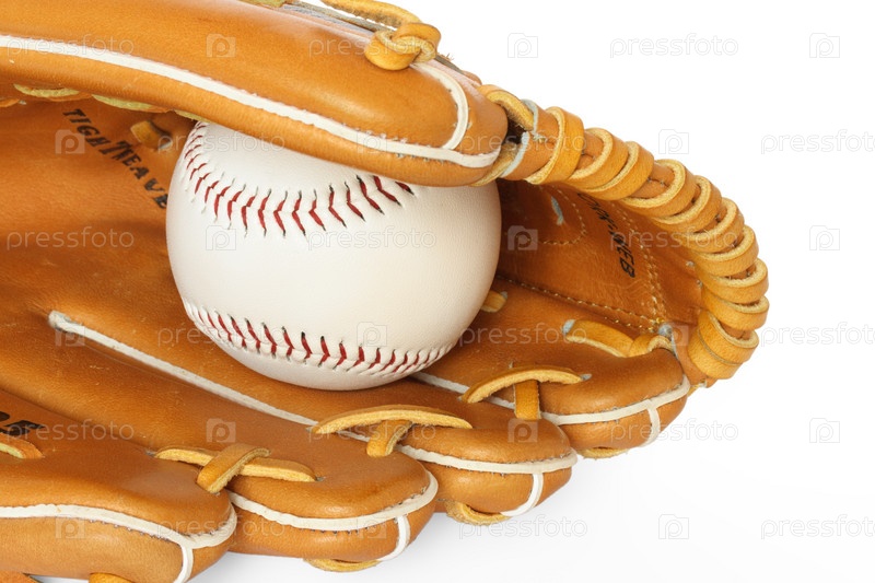 Бейсбольная перчатка с мячом на белом фоне
