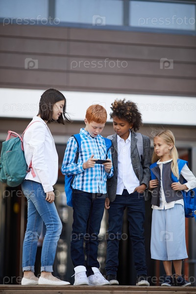 Школьные дети пользуются телефонами