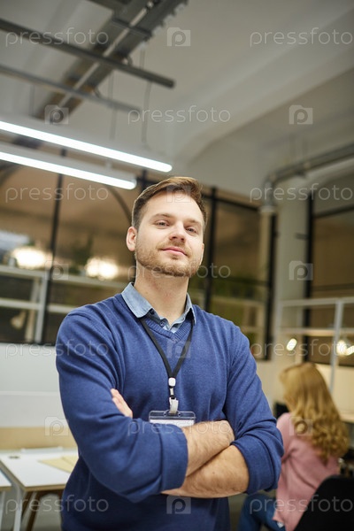 Уверенный в себе молодой менеджер-мужчина в офисе