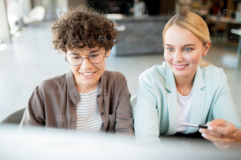 Молодые сотрудники, принимающие участие в видеоконференции или веб-семинаре