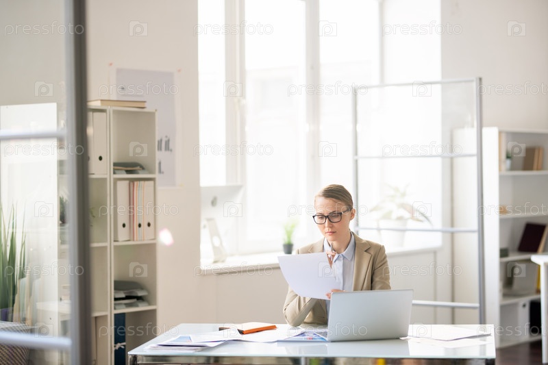 Деловая женщина, готовящая отчет