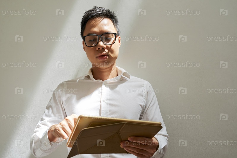 Бизнес-исполнитель с планшетным компьютером