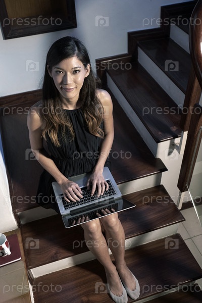 Красивая женщина, работающая на ноутбуке дома