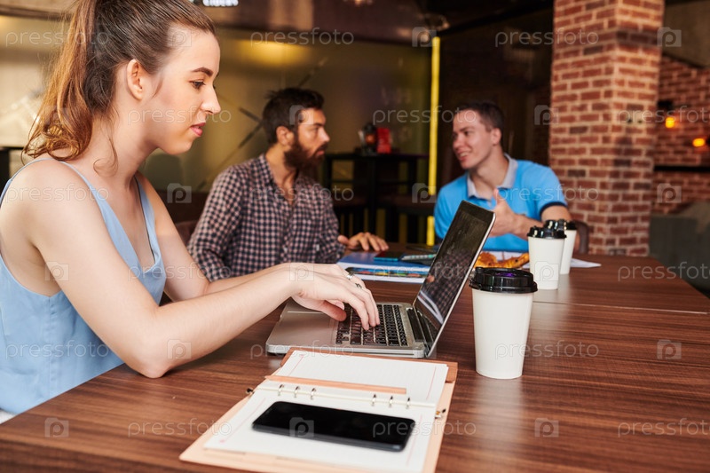 Деловая женщина работает над ноутбуком в кафе