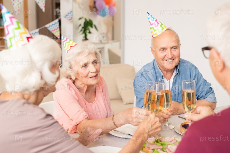 Группа счастливых друзей-старшеклассников, звучащих с флейтами шампанского