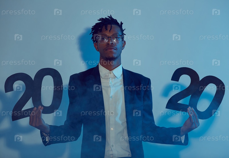 Модный африканский мужчина Holding 2020 Sign