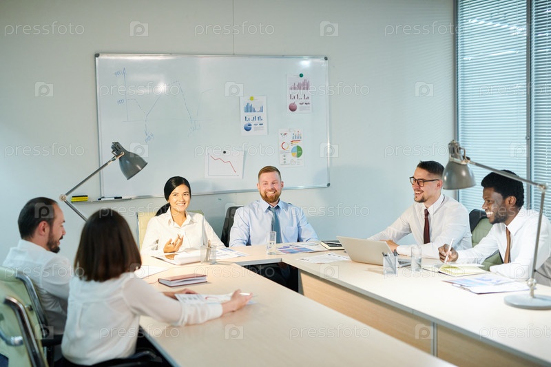 Группа молодых мультикультурных коллег, работающих поздно вечером