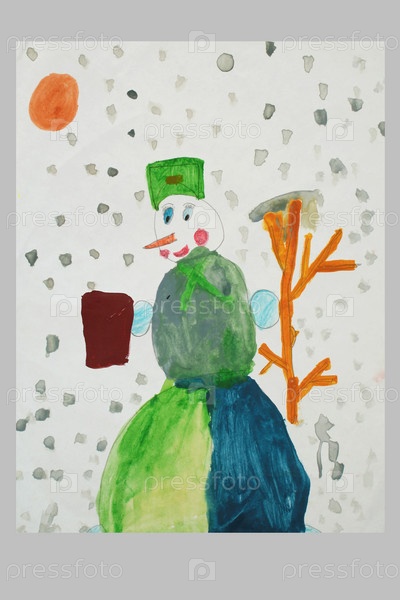 Детский рисунок: снеговик
