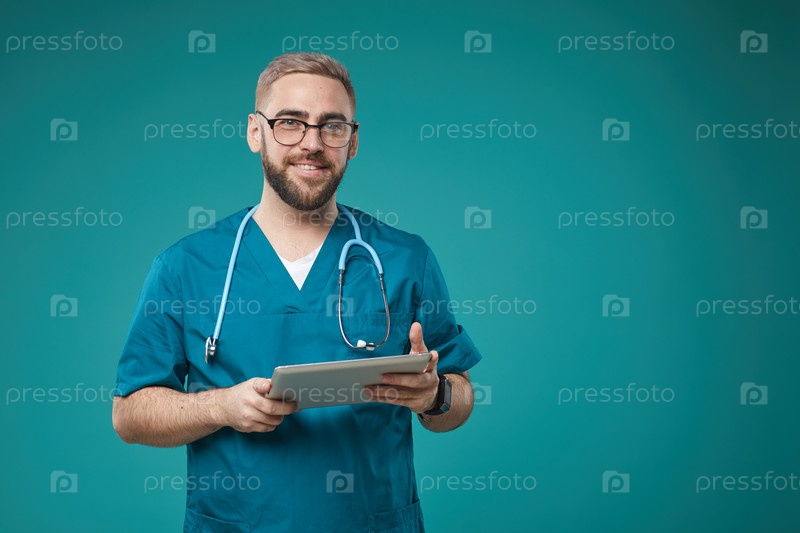 Терапевт с современным планшетным компьютером