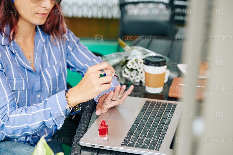 Женщина, наносящая лак для ногтей