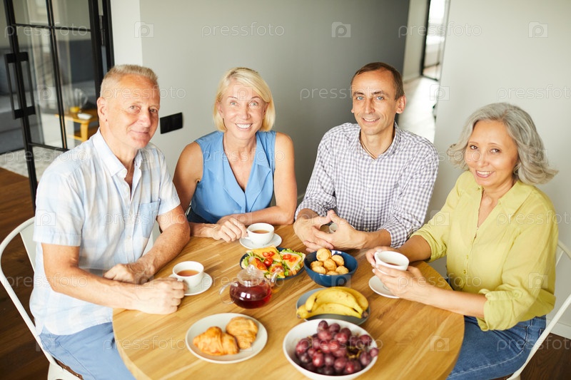 Портрет пожилых людей, пьющих чай