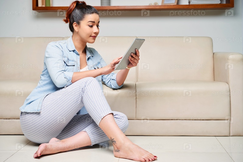 Женщина печатает на планшете
