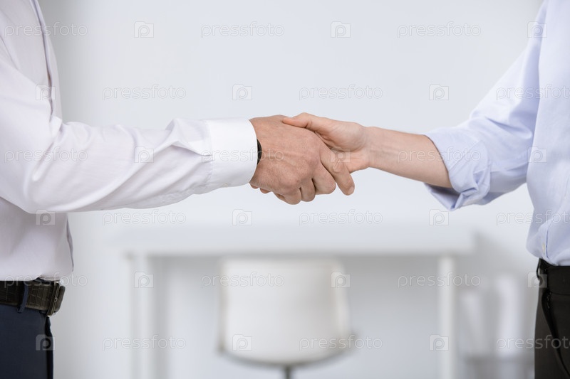 Руки деловых партнеров, приветствующих друг друга во время встречи или после переговоров