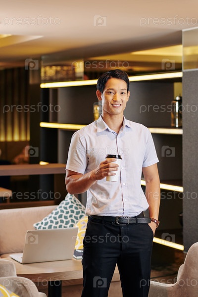Радостный мужчина с чашечкой кофе
