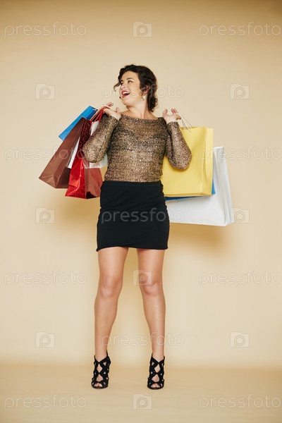 Веселая женщина с сумками для покупок