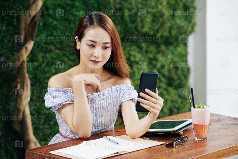WOman проверяет социальные сети